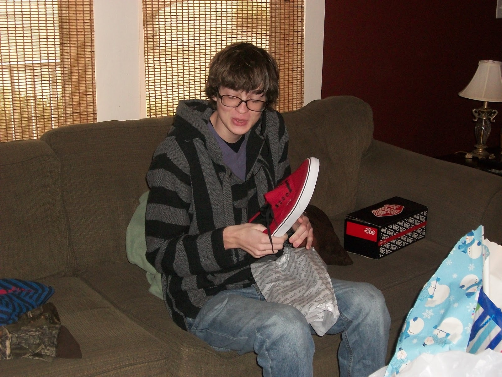 New clothes from Grandma, and money from all of the grandparents, which always seems to fit just right.Momma got it right with the Van's shoes. They are flat skate boarding shoes that he seems to have a passion for.